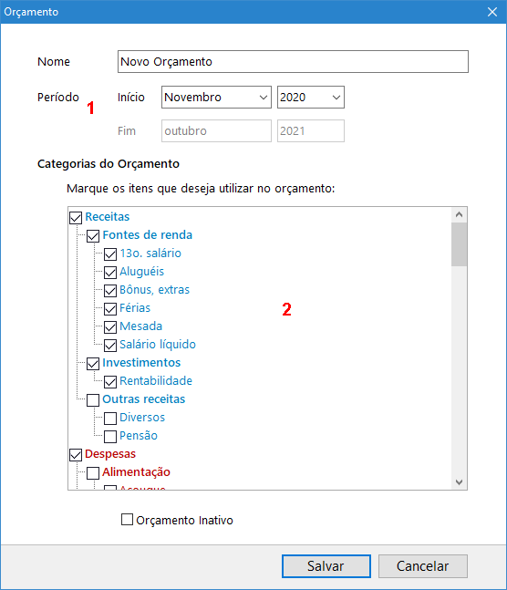 2 – Categorias do Orçamento: nesta lista você marca os itens que irão fazer parte do orçamento, caso a