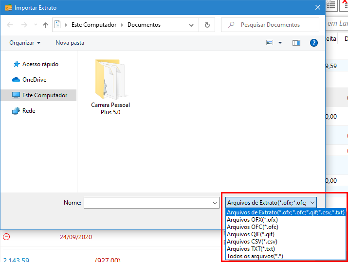 Após confirmar o arquivo, o Carrera ira importar o extrato para a lista de lançamentos.