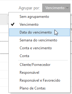 1 – Modos de exibição das contas agendadas: esta lista mostra as opções de visualizações dos agendamentos, como exibir somente as Contas a Pagar, somente as Contas a Receber e assim por diante.