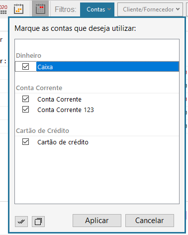 Nota: os filtros de período estão disponíveis apenas no modo de exibição de Projeção das Contas, e